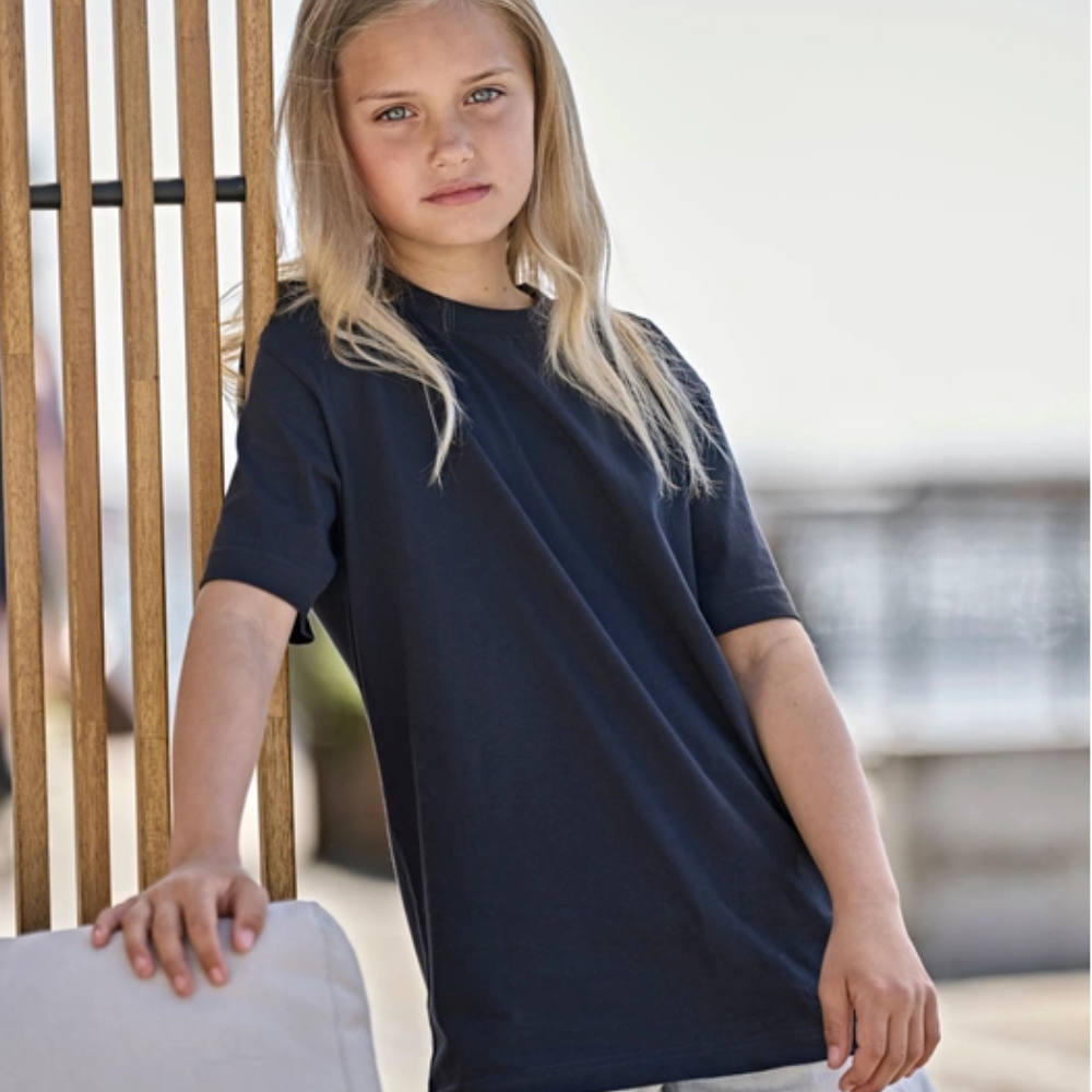 Børne t-shirt med logo tryk fra Tee Jays.