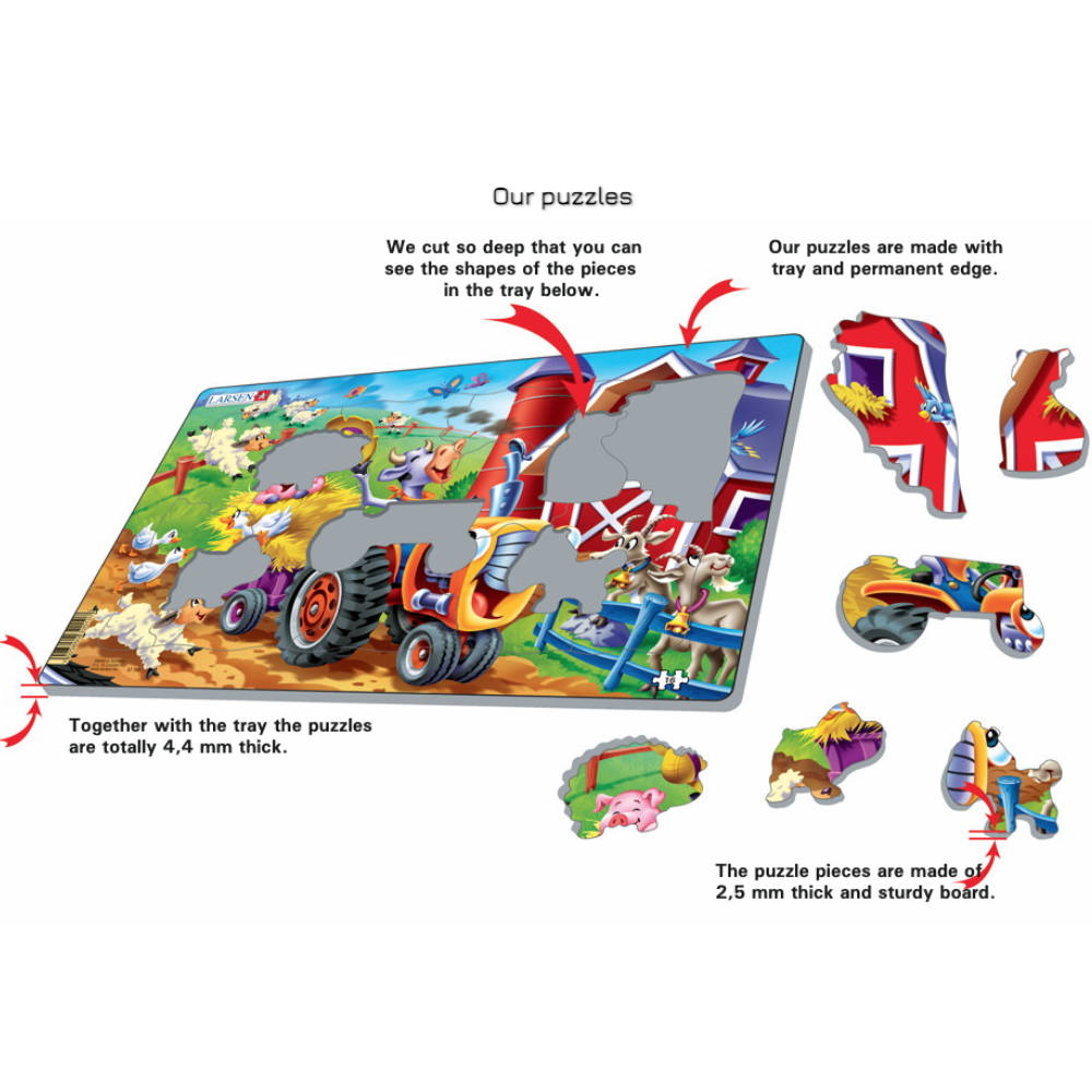 Den pladsbesparende bakke- og rammekonstruktion betyder, at puslespillet ikke kræver en separat æske til opbevaring og derfor er let at håndtere og distribuere.