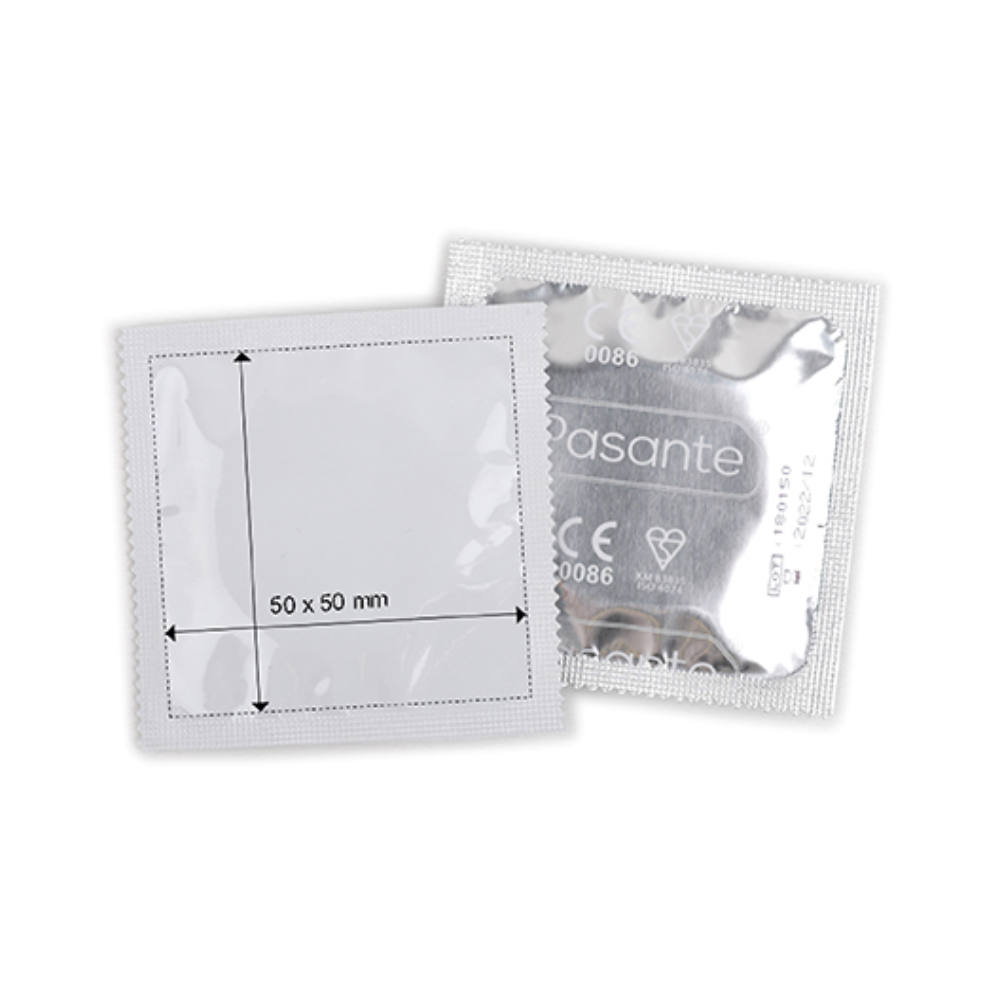 Kondomerne er de velkendte Pasante kondomer hvorpå der trykkes på emballagen. Alt er produceret i Luxembourg og med utallige muligheder for personalisering vedr. folie farve, kondomer med eller uden smag (vælg mellem natur, banan eller jordbær)