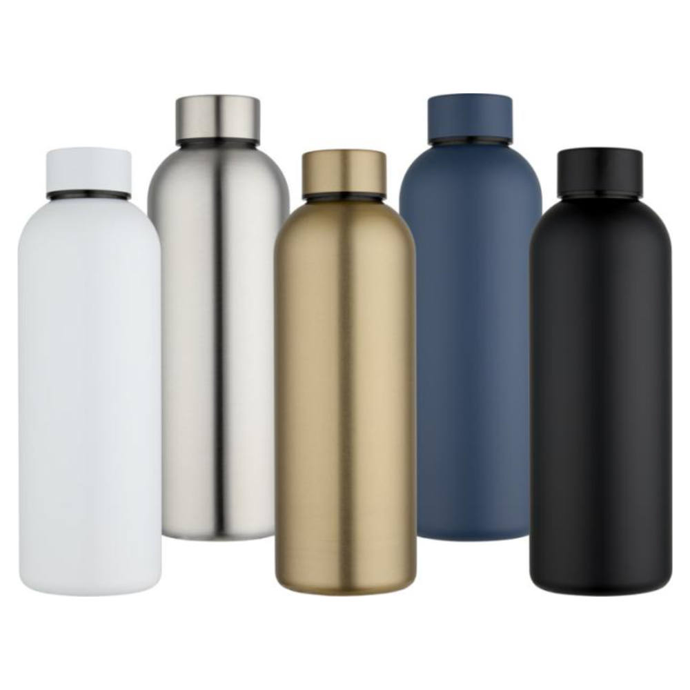 Vandflaske i genanvendt rustfrit stål med skruelåg og karabinhage. Pris inkl. digitalt rundtryk, opstart og fragt PRISGARANTI – læs mere her >>